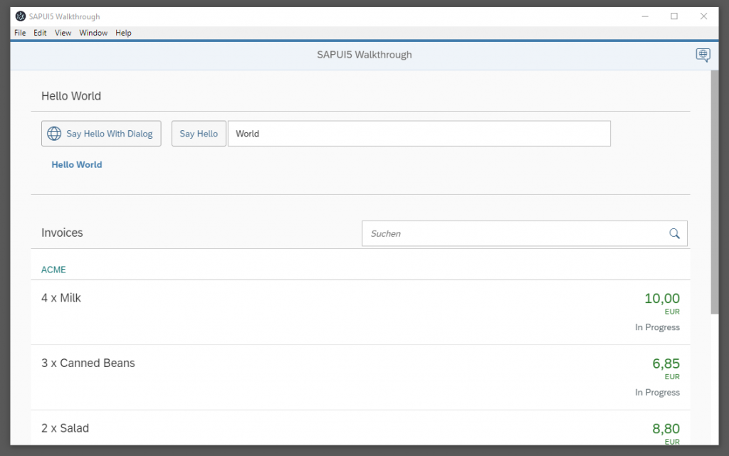 Sieht doch eigentlich schon ganz gut aus, oder? Aber noch ist unsere App nicht so richtig offline-fähig, denn noch lädt sie die SAP UI5 Bibliothek über das Internet nach.
